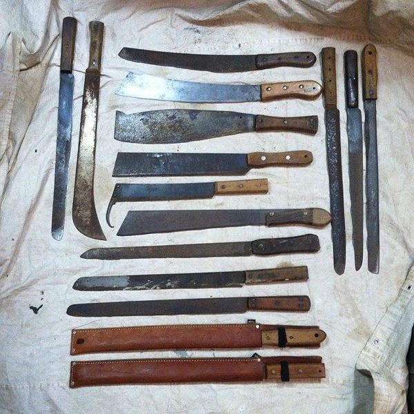 Corn knives did (briefly) survive the invention of mechanical harvesting. Since Midwestern farmers rotate their crops, fields that were planted to corn one year would have something else, usually soybeans, the next. That meant that there would be a lot of unwanted corn plants coming up in the new crop. The easiest way to get rid of them without damaging the plants you wanted was to go through and chop them down with corn knives. That was my summer job in the late 80’s. My corn knife was a heavy, rectangular blade --basically a Midwestern machete. My grandpa had a 10-inch miniature scythe, a beautiful little thing that looked like it belonged in a martial-arts movie. Around 2000, better-targeted pesticides that could kill off the corn and weeds but not the crop came on the market, and now corn knives truly are obsolete.